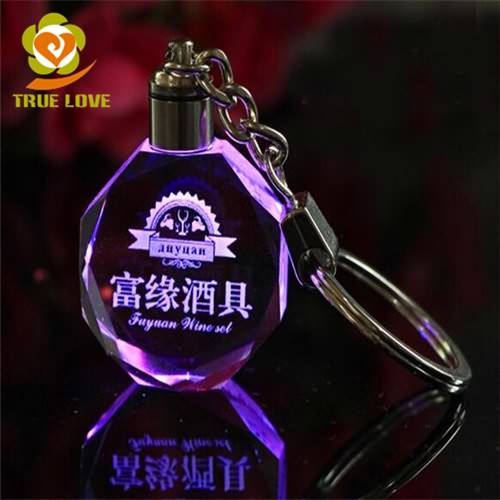 3D Laser Engraved Crystal Glass Octagon LED Key Rings