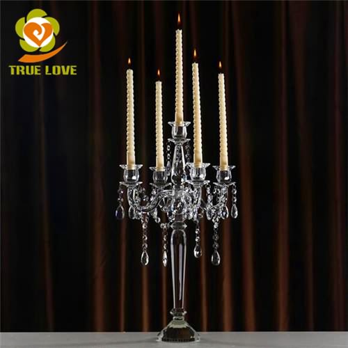 5 Arms Large Cheap Crystal Glass Candelabras Candle Holder For Weddings