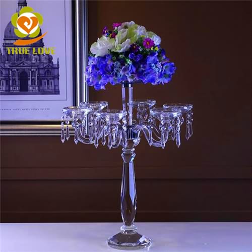 Cheap Custom 5 Arms Crystal Candelabra Flower Stand Wedding Centerpieces