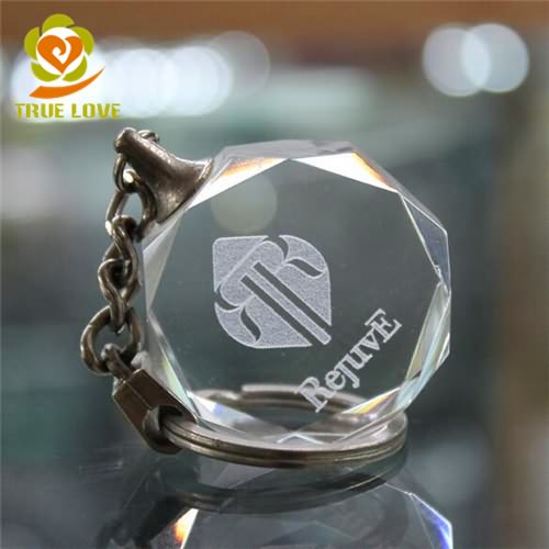 Cheap Custom blank Crystal Glass Octagon Keyrings Wholesale