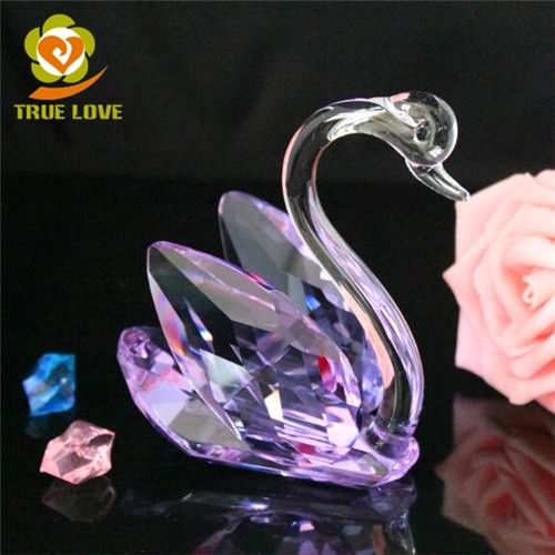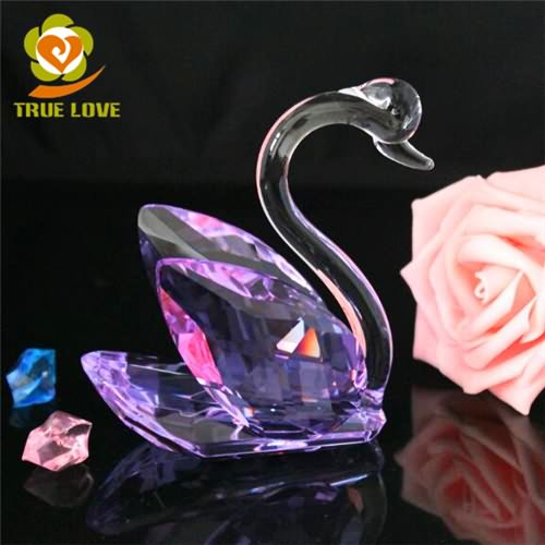 Custom Miniature Colored Glass Pink Crystal Swan Figurines