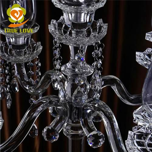 Hot Sale Large Beaded 5 Arms Glass Candelabra Wedding Centerpieces