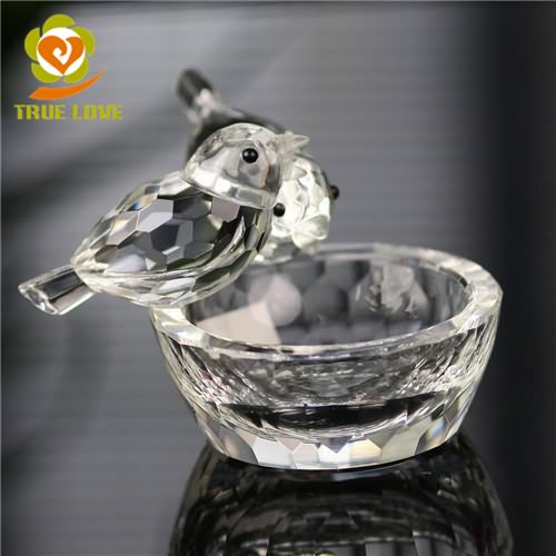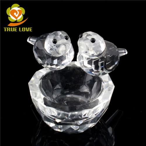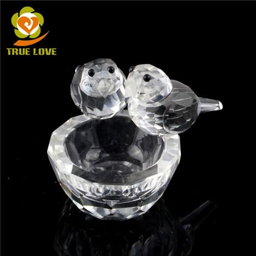 Hot Sale Two Crystal Glass Birds Sculptures Statues Stand On The Bowl