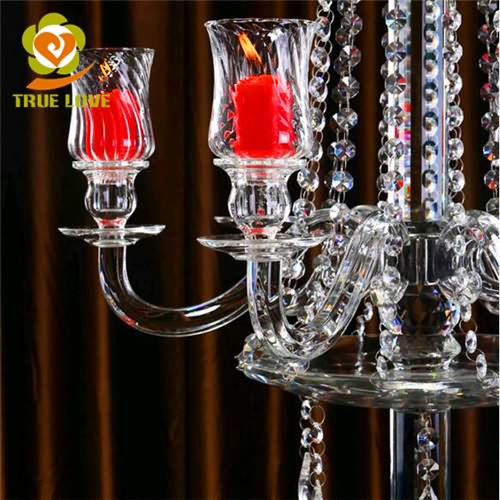 Large Standing 6 Arms Lead Crystal Candelabra Flower Stand Wedding Centerpieces