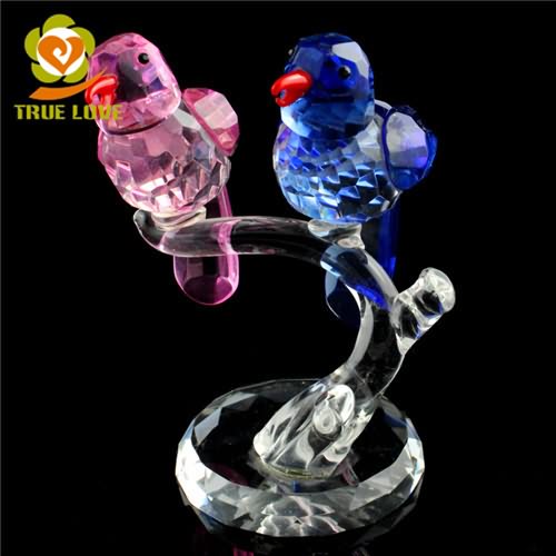 Miniature Collectible Blue Pink Crystal Glass Bird Figurines