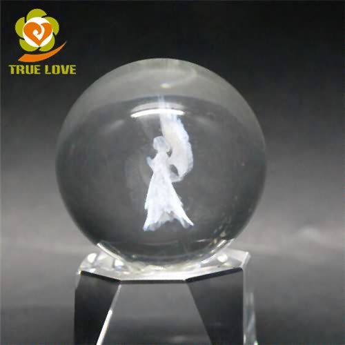 Small Solid Crystal Glass Balls With Laser Engraved Angel