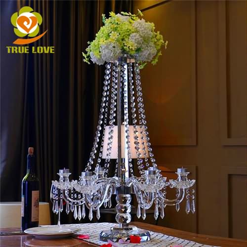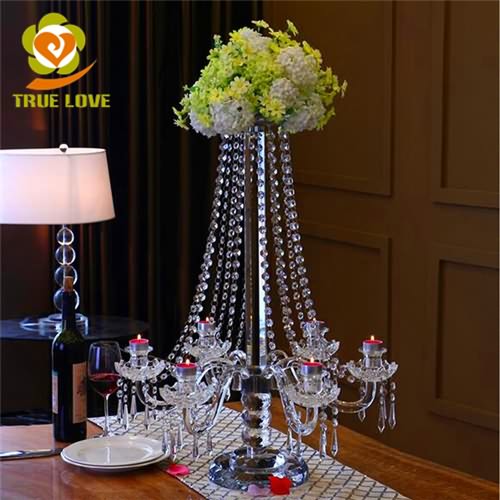 Wholesale Standing 6 Arms Lead Crystal Candelabra Flower Stand Wedding Centerpieces